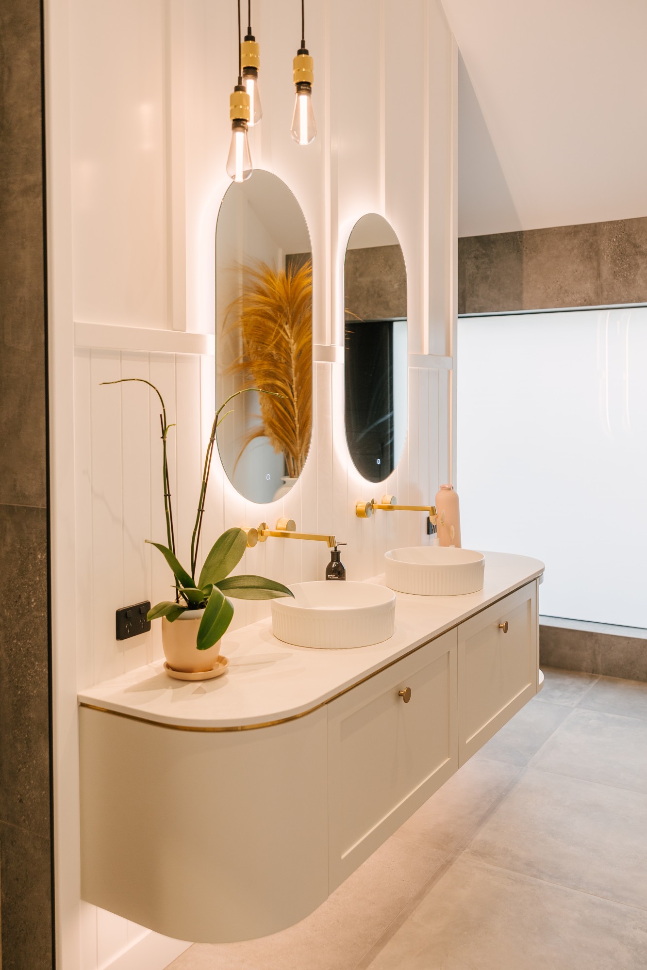 Nicola’s background in joinery is a core strength. On this project, Nicola drew detailed joinery plans for the kitchen, vanities and wardrobes. While Avant Garde Interiors designed and crafted the stunning spiral staircase.