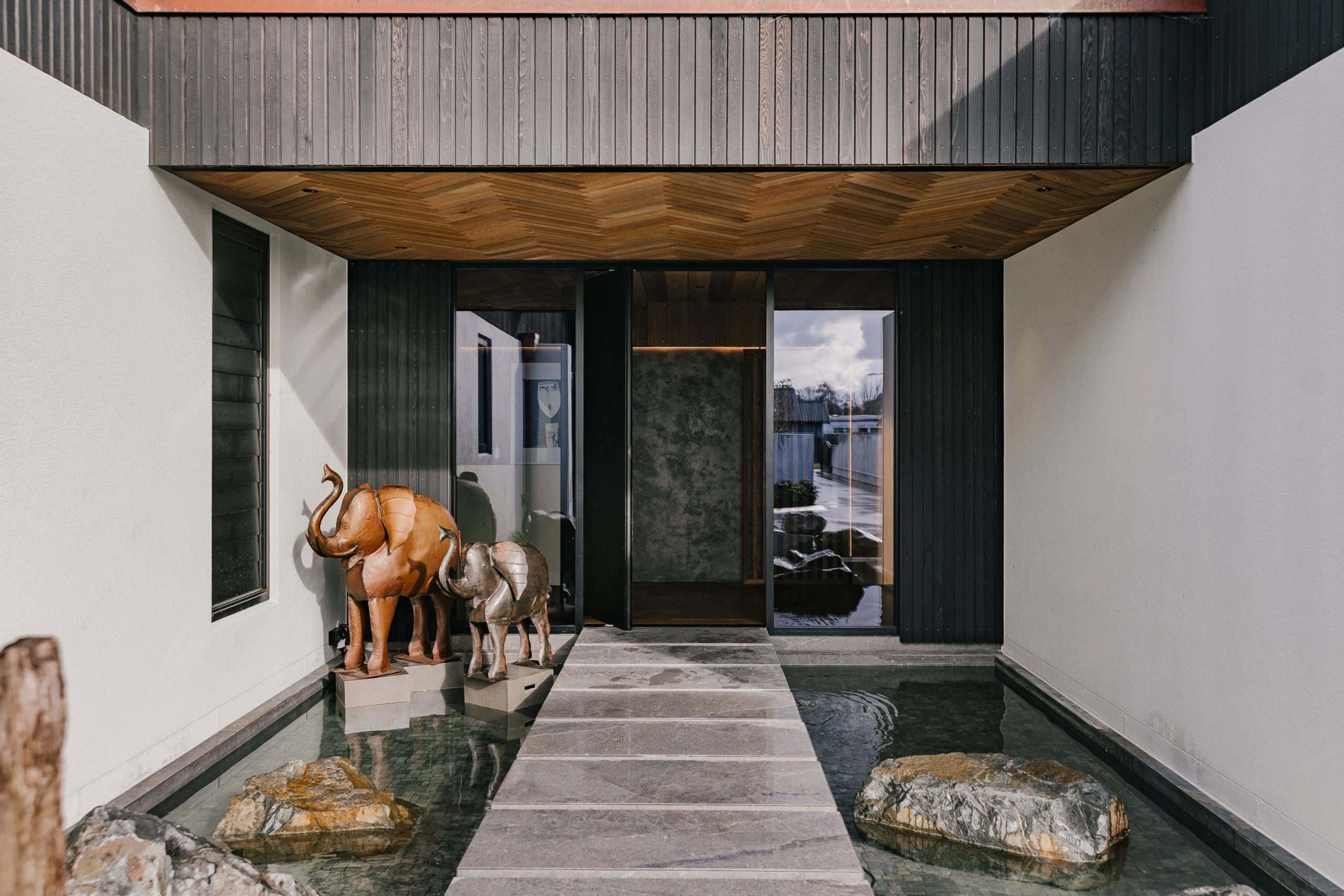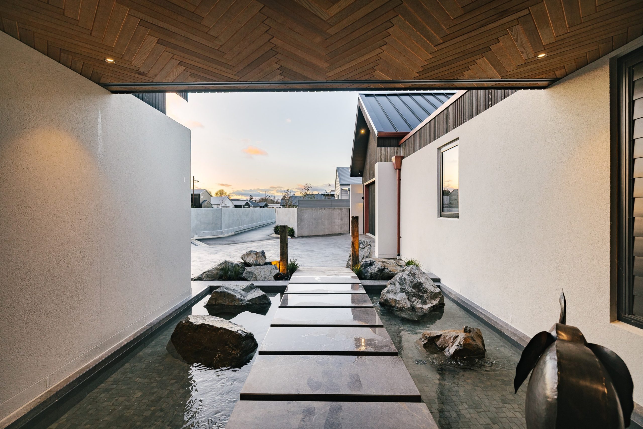At the entrance, a pond with floating stepping-stone pavers was introduced an idea inspired by Ben’s travels in Bali.