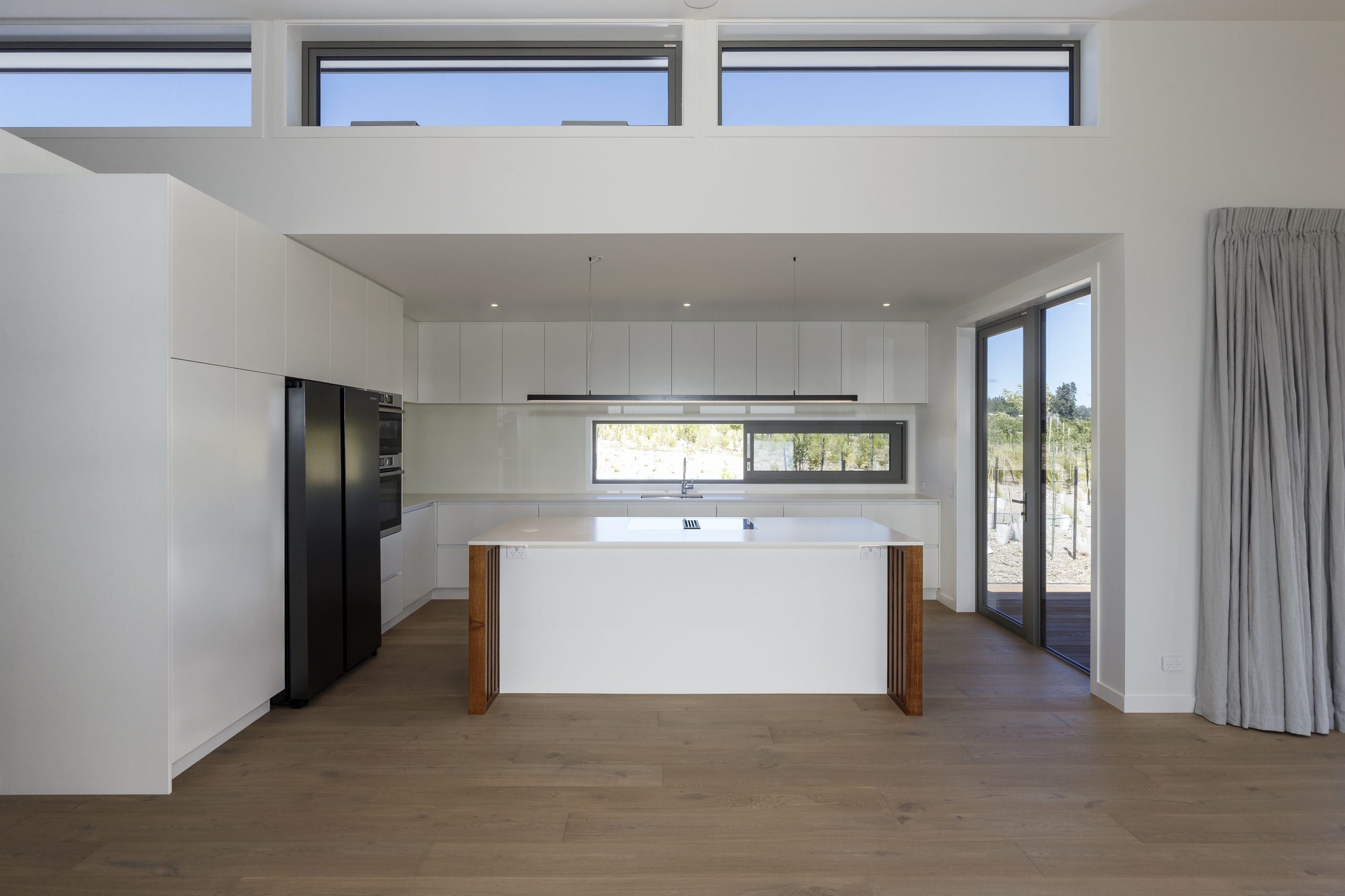 At the heart of the main residence is the kitchen. “The timber slats on the island bring a sense of warmth,” Nick explains. A slot window above the bench serves a dual purpose, offering natural cross-ventilation while also providing a practical pass-through to the sheltered barbecue deck. The layout ensures the kitchen remains functional while maintaining strong connections to both the interior and exterior spaces.