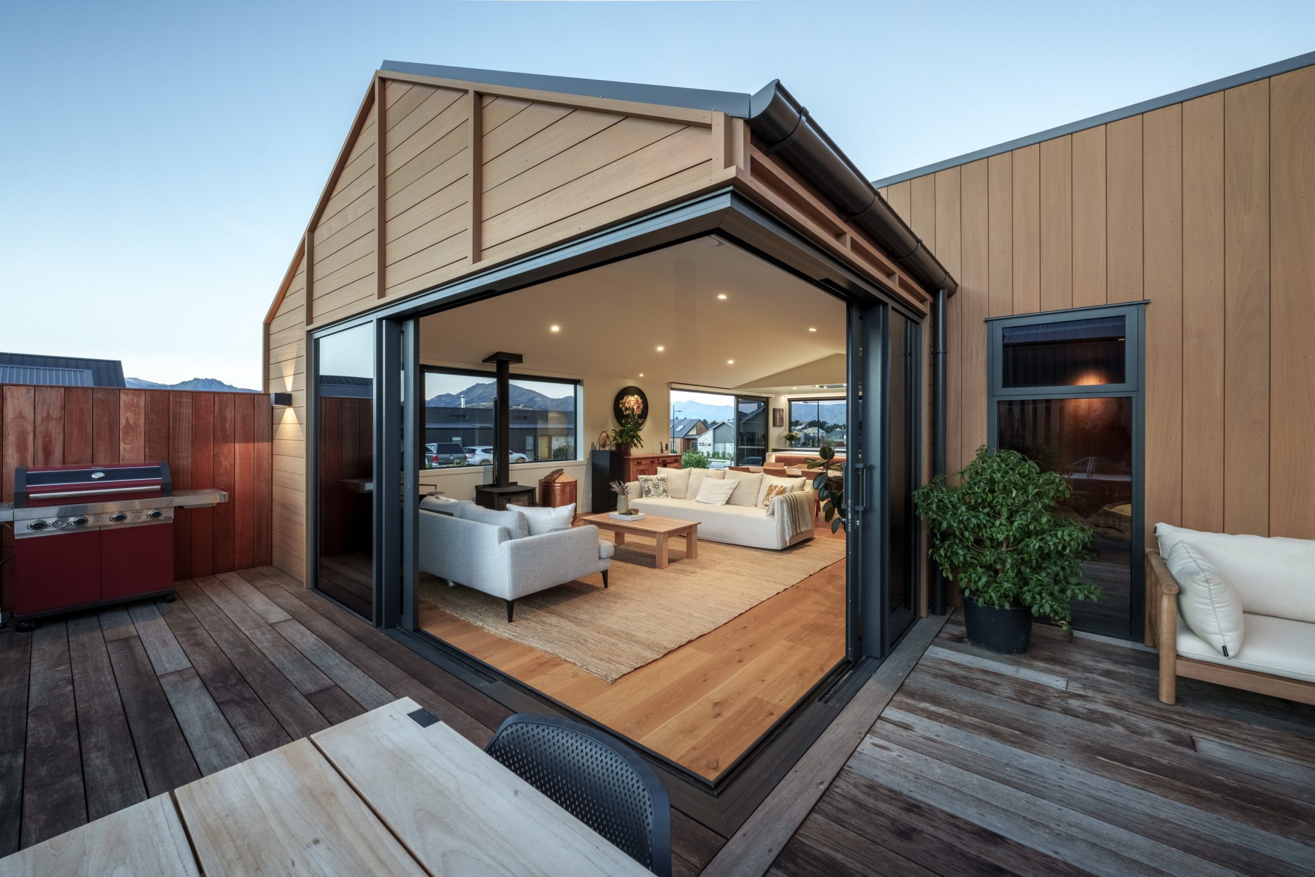 Pre-oiled cedar weatherboards and batten cladding from RK Timbers adds depth and texture, creating subtle shadows that shift with the light, giving the home a character that evolves throughout the day.