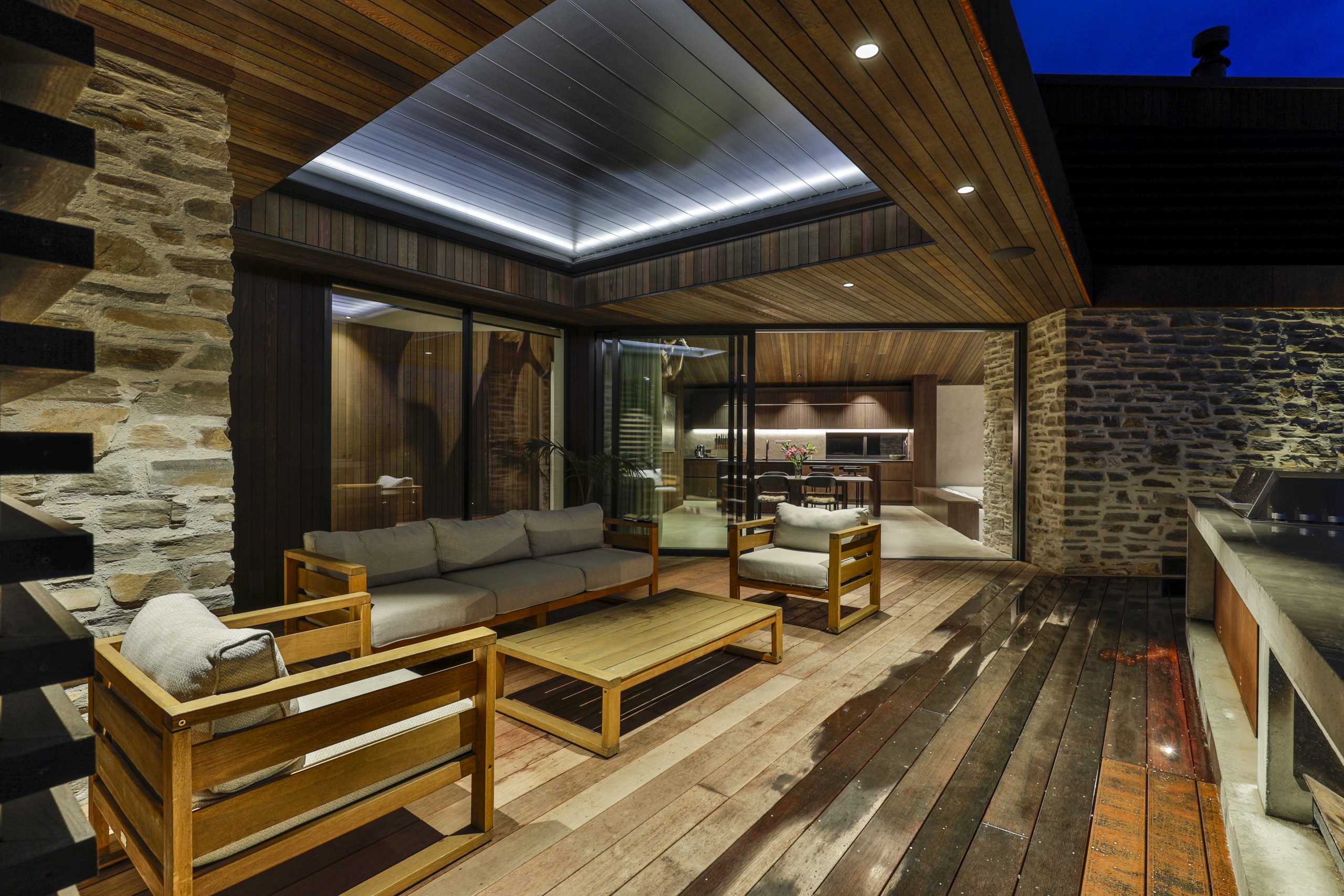 Natural stone chip, a by-product of the stone exterior cladding process, dawns the flat roof areas, helping to ground the home and visually improves the aesthetic for elevated neighbouring properties. The outdoor entertaining area is an elegant extension to the home design, providing indoor-outdoor flow.