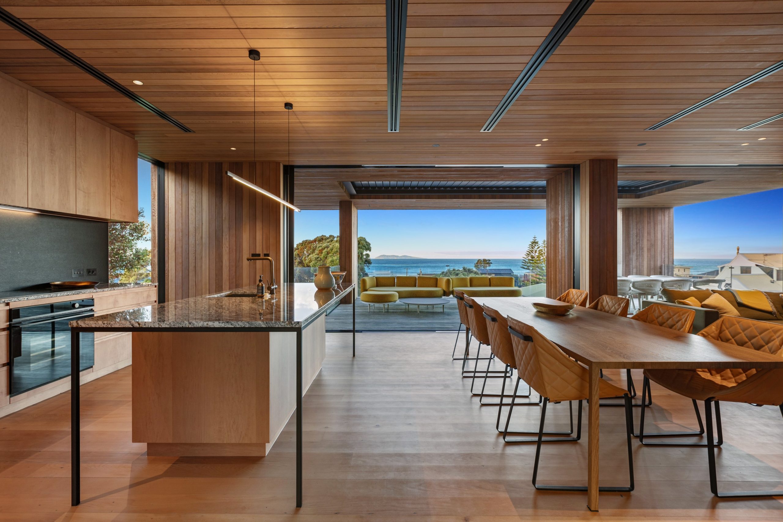 The Bay of Plenty and Central Plateau’s 2024 Supreme House of the Year is a modernist marvel. Its commanding coastal presence was achieved by a team of meticulous, forward-thinking industry experts at the top of their game. Continuous Western Red cedar flows both inside and out, drawing the eye to wide statement windows that bask in western mountain views and Waihi waves. Custom details and sustainable solutions precisely finalise the project’s refined, contemporary vision. Constructed with the future and sustainability in mind, this architectural feat has drawn attention to the masterful luxury summerhouses emerging along the highly sought-after Waihi Beach. It’s no wonder Kiwis are living there all year round.