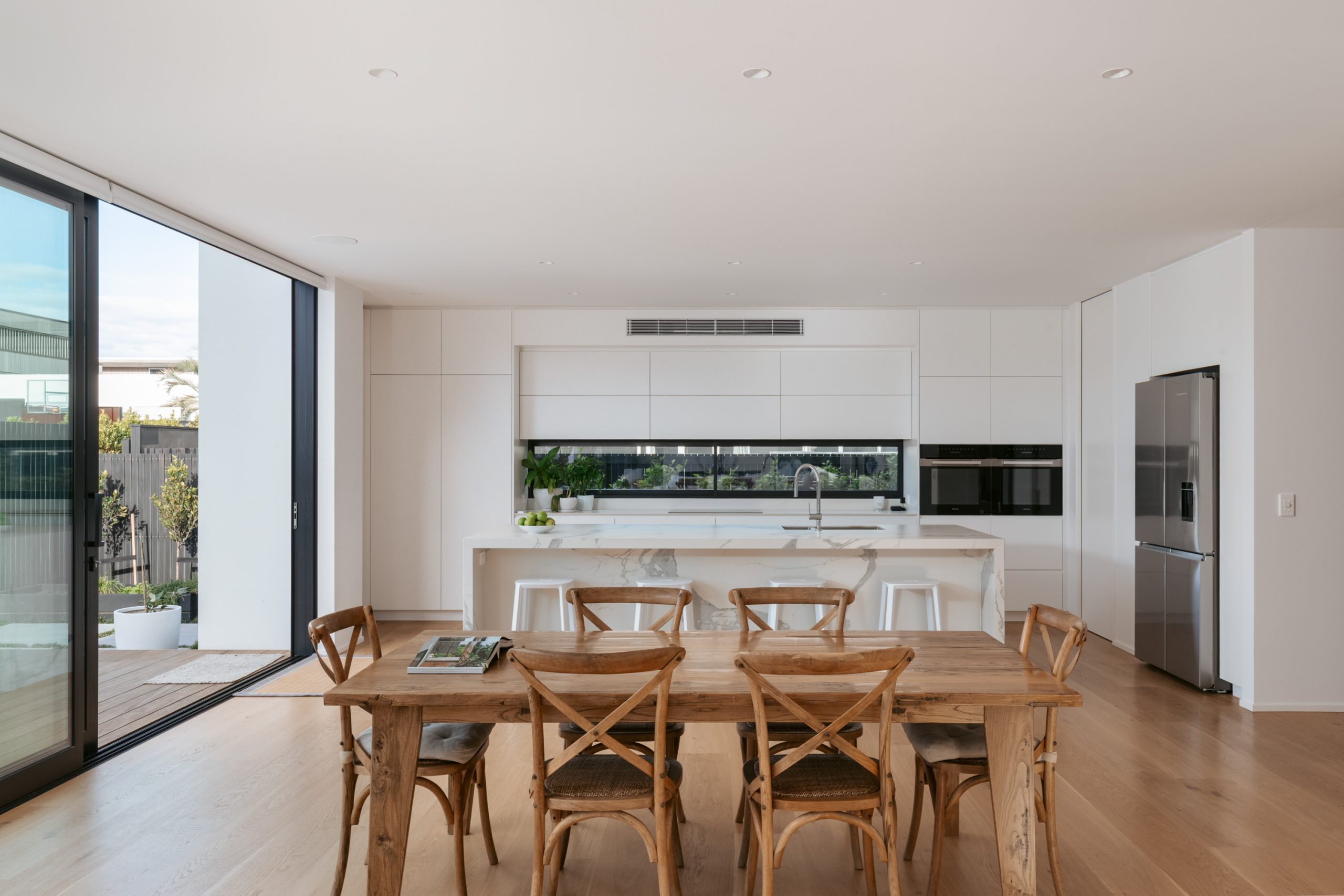 “To achieve crisp and clean lines, the builders had to be very precise,” says Fana in praise of builder Todd Grey and his team who worked with a high level of craftsmanship and precision to achieve the smooth minimalist finishes required by the design.