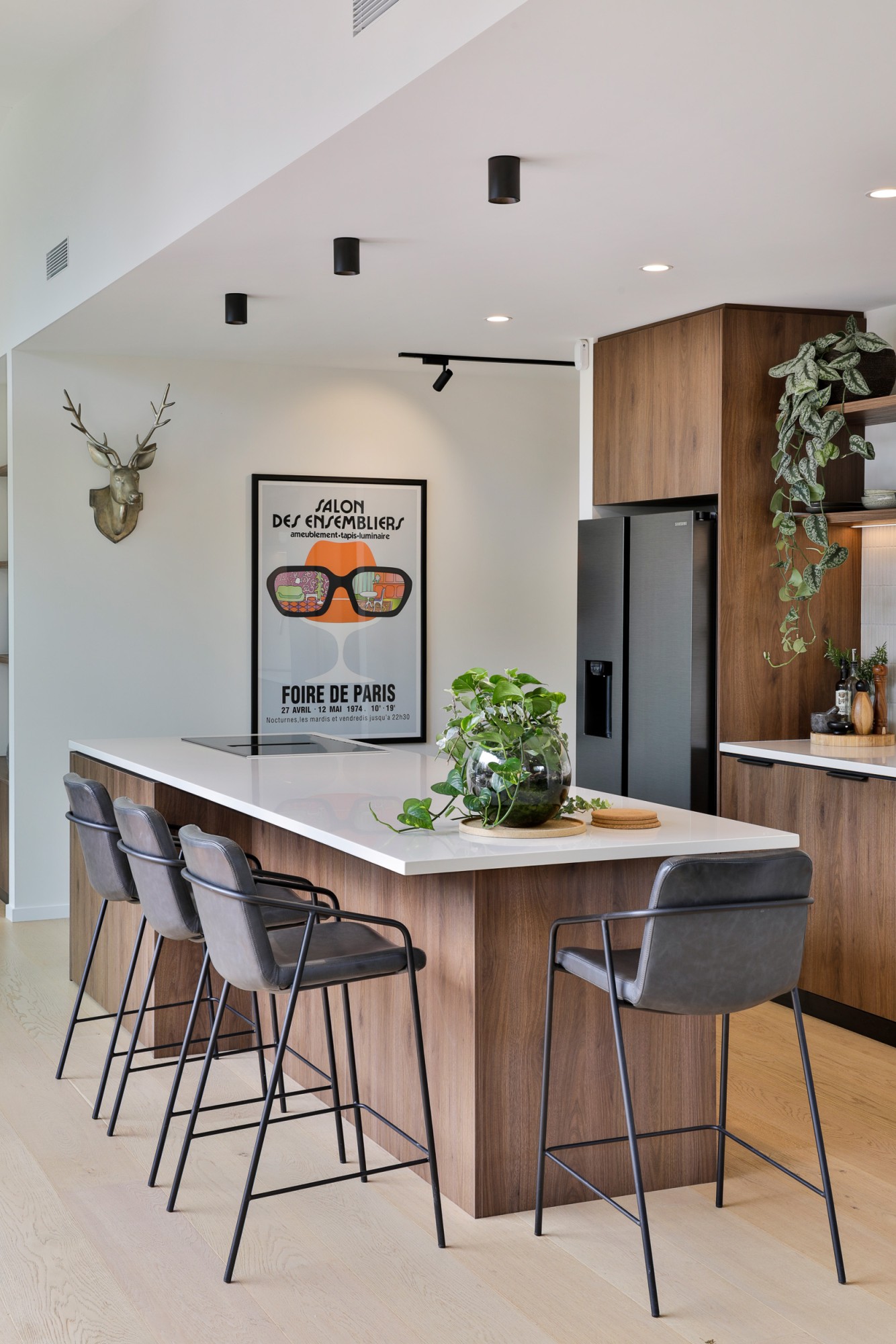 The north-facing centrally located kitchen serves as the organisational core of the house, visually connected to the main living spaces and outdoor area. “The kitchen by Trends Kitchens is a standout and the owners’ furniture and styling have finished the home beautifully. The way the kitchen connects all three living areas works exceptionally well and really reinforces it as the heart of the home.