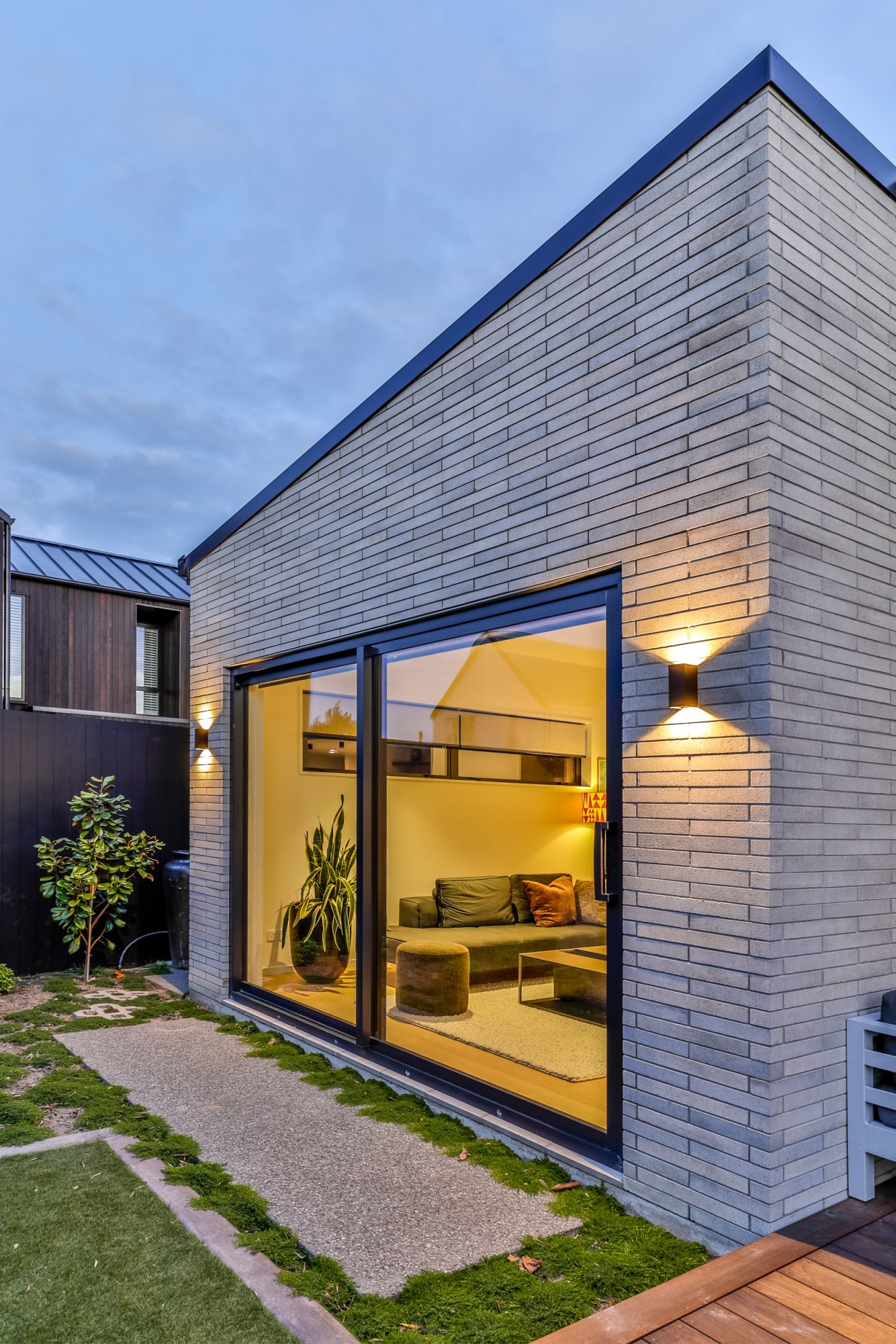 The Vi-Block also made a strong impression on Daniel: “The Vi-Block cladding was a notable innovation on this project. At the time, the manufacturer hadn’t produced a brick in this longer, thinner profile. The result worked so well that it has since become a popular option for Viblock. It’s a material I liked enough to use in my own recently completed home.” Elsewhere on the exterior James Hardie Linea Oblique cladding in Resene Flaxpod has been matched with T-Rib Colorsteel Endura roofing from Metalcraft and the window and door joinery.