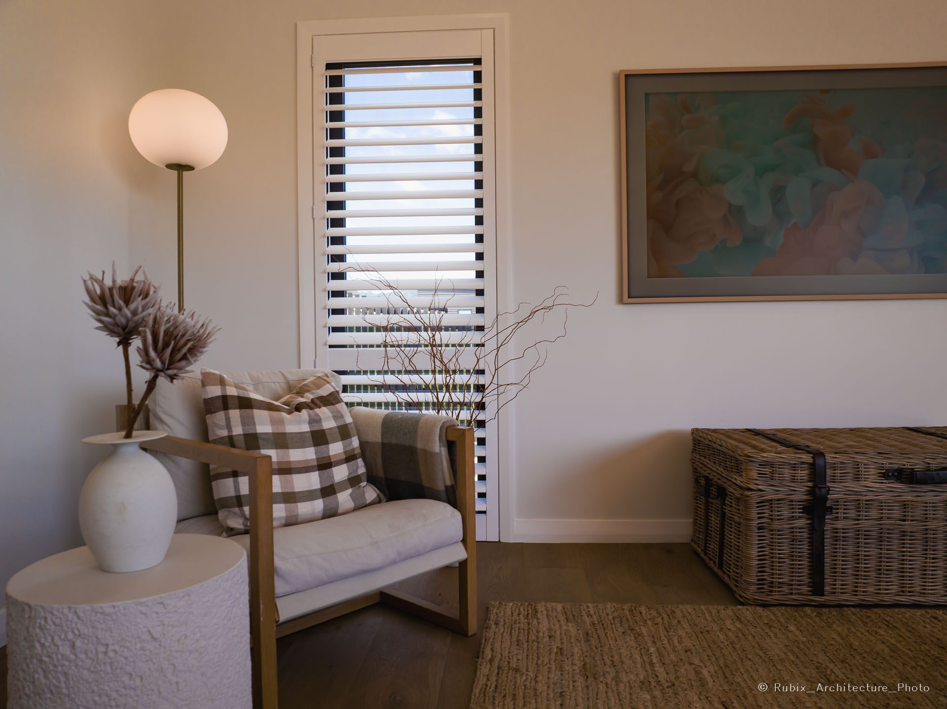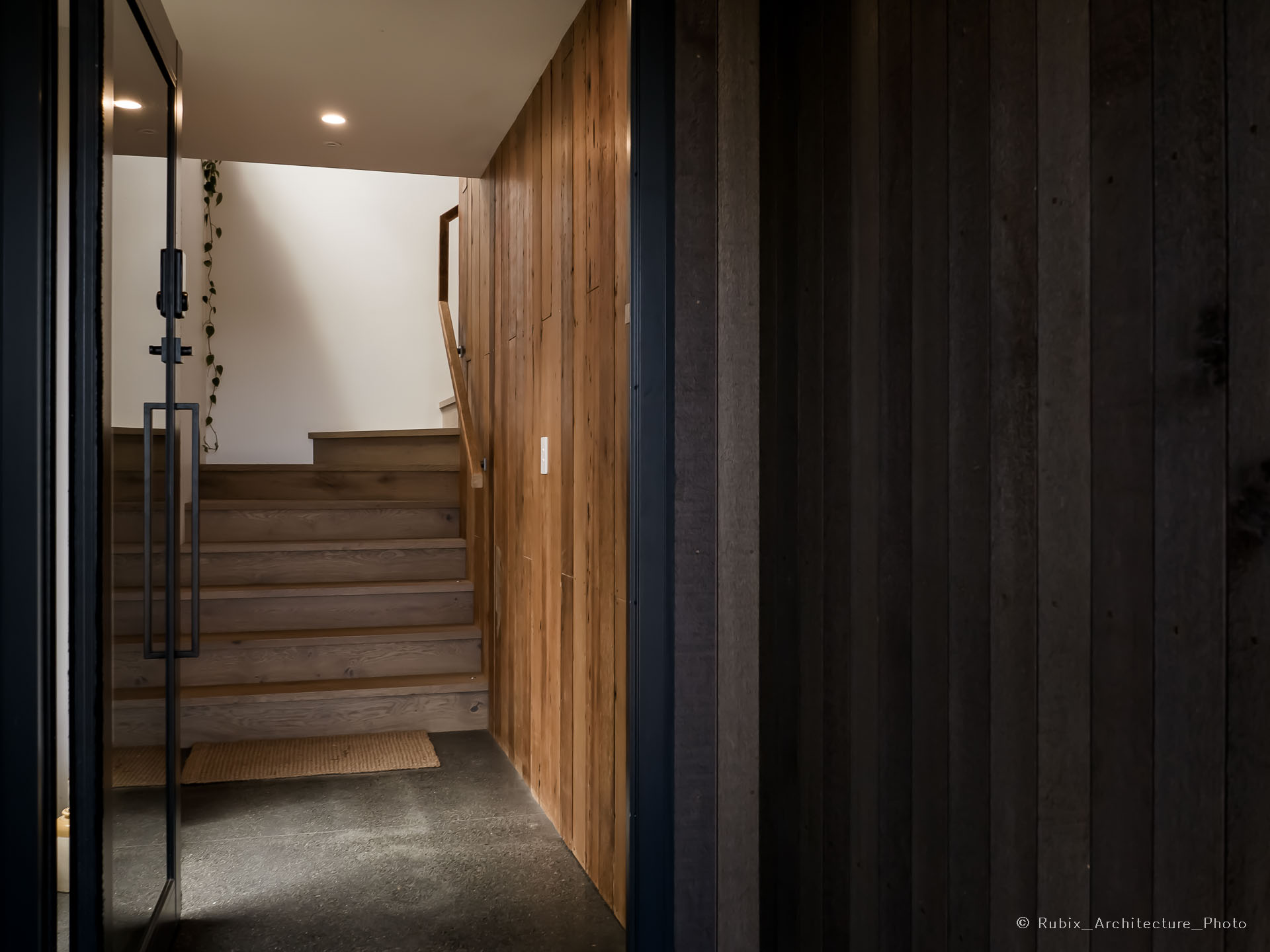 Rubixarc’s design philosophy for this project was guided by practical, smart layout principles and a minimalist aesthetic, focusing on efficiency and connection to the surrounding landscape. The site’s orientation optimises sunlight and views; natural timber textures and careful window placements blur the boundary between inside and outside.