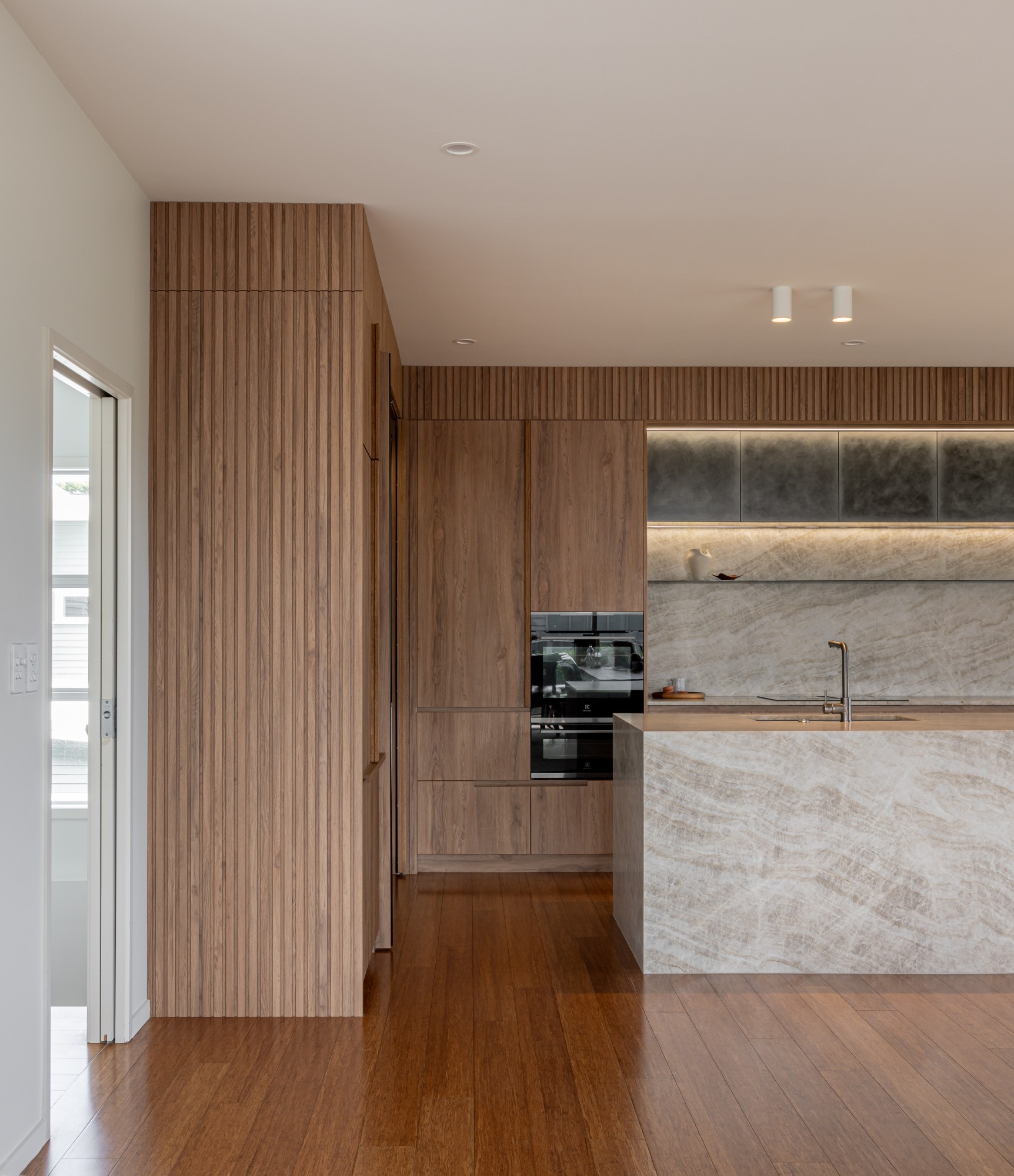 The Matapouri Kitchen with its refined timber surfaces illustrates how architectural timber linings add character, introduce texture, and shape spaces that feel both enduring and alive.