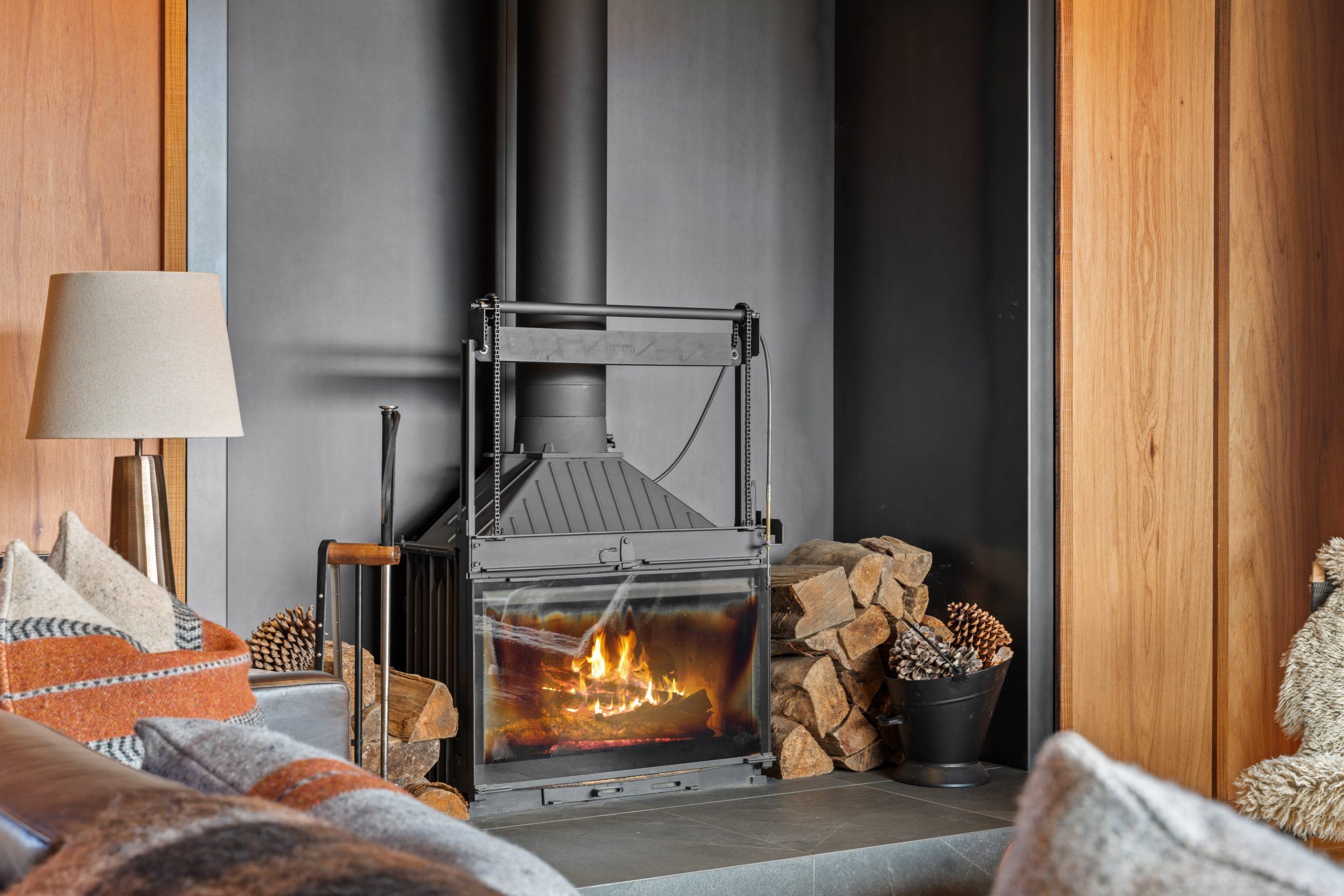 The home’s layout is thoughtful and inviting, with an open-plan living area that flows seamlessly into the kitchen and dining spaces. “The design is intentional and intimate; the living room features a cosy corner window seat and statement designer fireplace, with every room framed by views of the moody mountain landscape.” Large glass sliding doors lead to a timber deck, extending the living area outdoors and offering unobstructed views of the surrounding mountains.