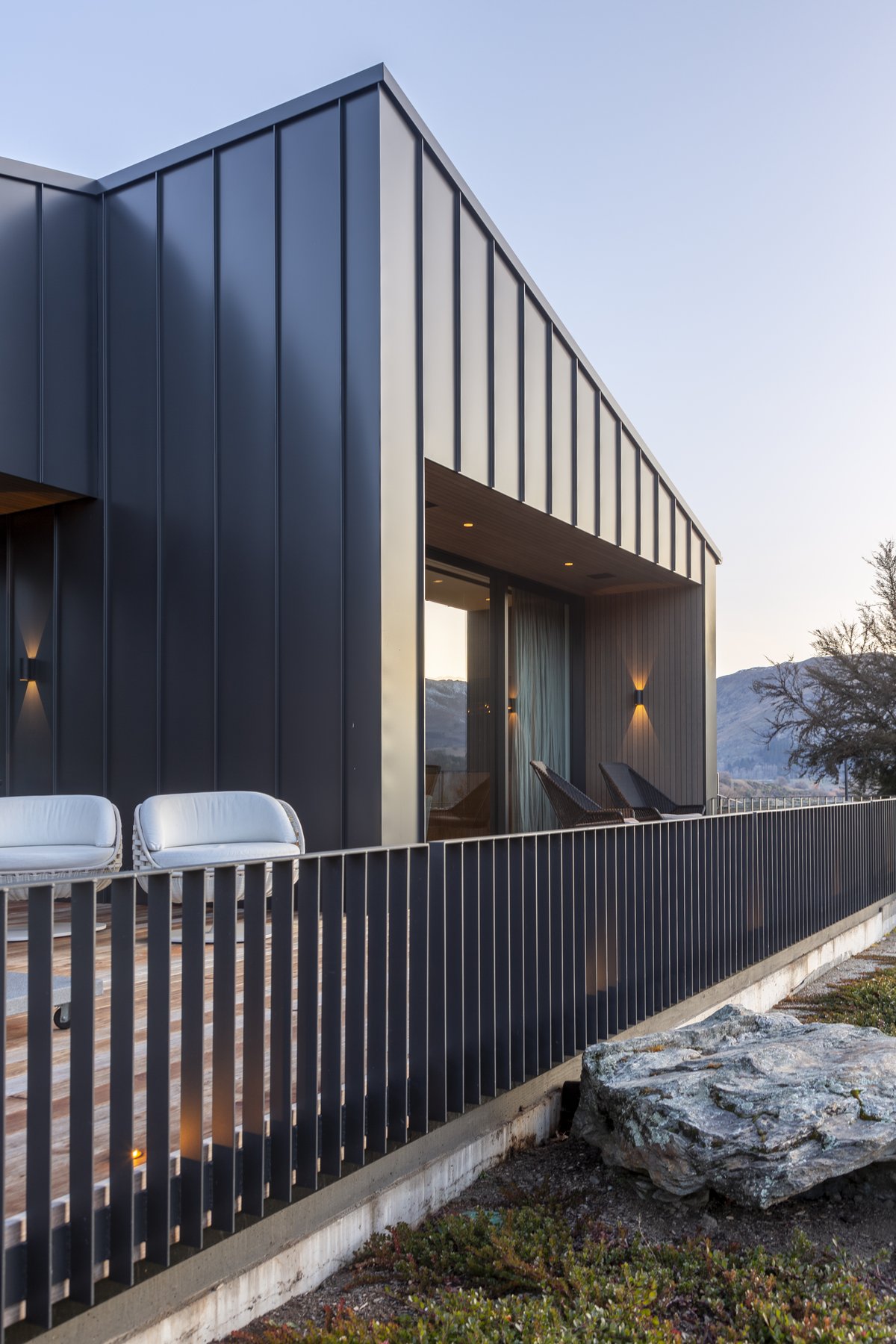 This meticulously crafted metal and schist home, covering 642m², showcases outstanding design and construction by the talented teams at John Gavin Construction and Sheppard & Rout Architects.
