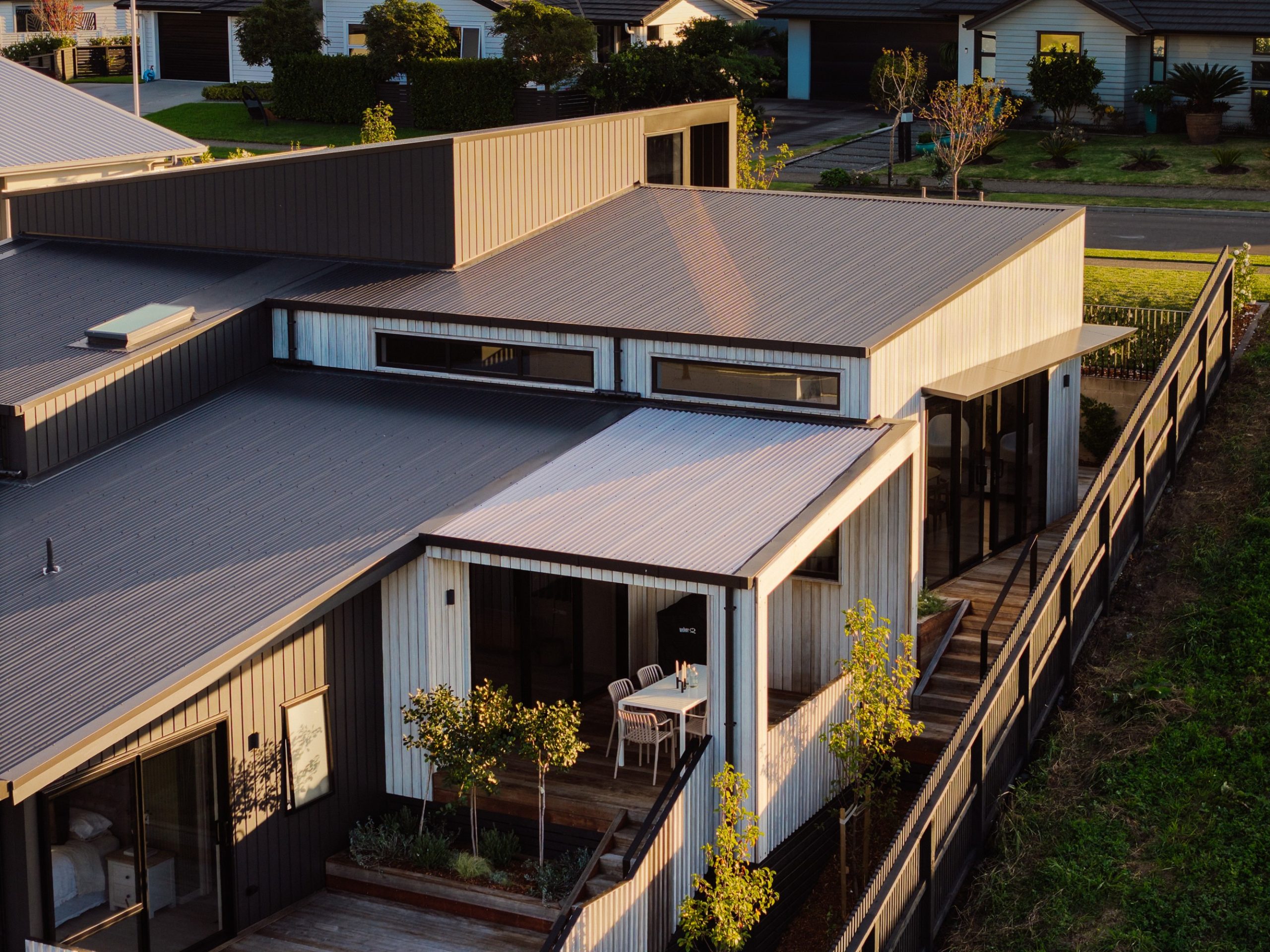 For architect Andrew Ward of Mod Architecture, the goal was to create a spacious home for the family of five, leveraging the steep Pyes Pa section to maximise space and capture views wherever possible. “A builder always comes with a level of design understanding and trust in the Architect,” says Andrew. Having worked with Mod Architecture on other hillside builds, Alex from Bespoke Construct felt confident that Andrew and his team were the right fit for their home. “The initial designs were bang on, only requiring minor adjustments,” says Alex.