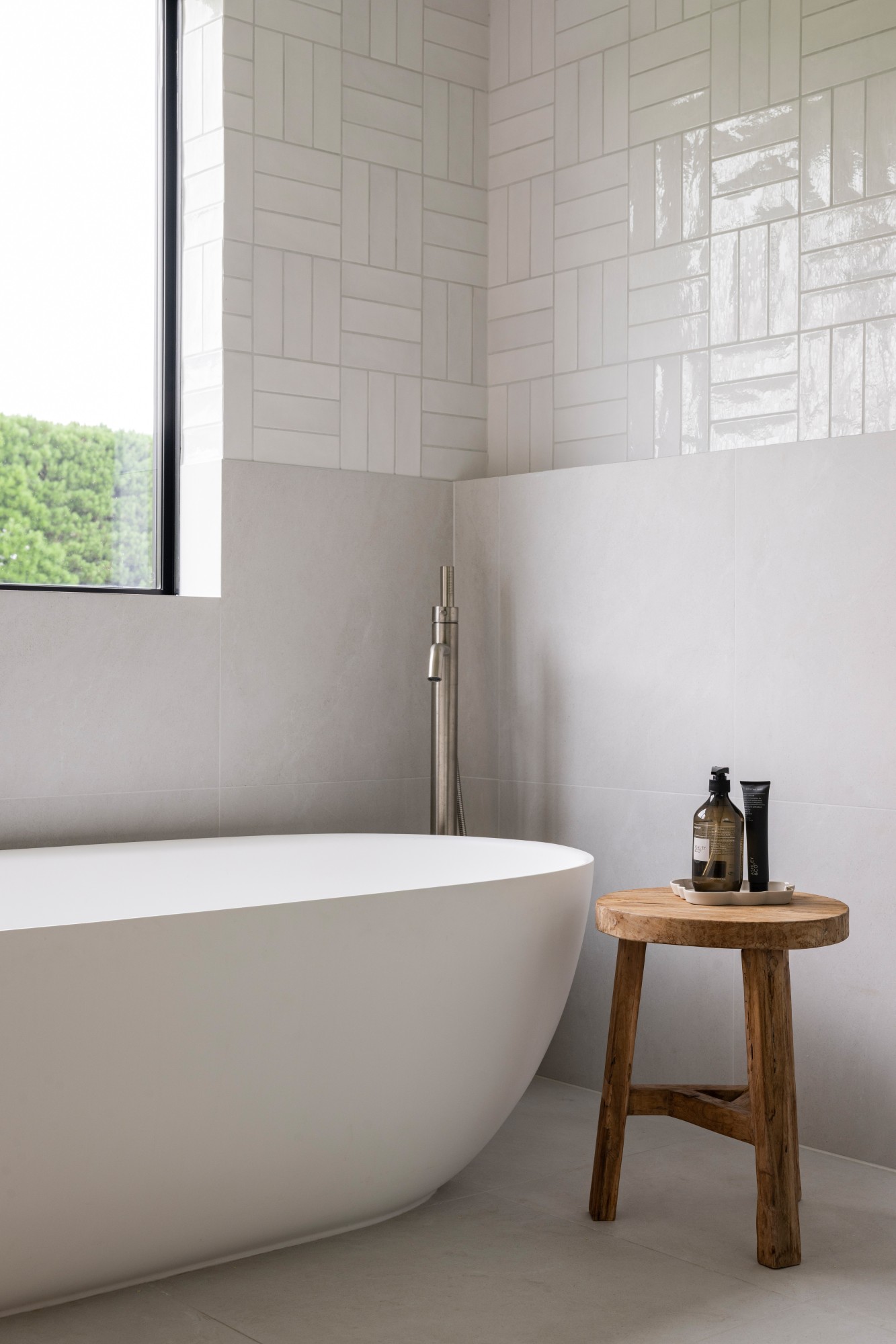 Inside, Comber and Comber have balanced refinement with playfulness. “We want every interior that we design to reflect the unique lifestyle of the people that live in it,” says Ashleigh from Comber and Comber. The challenge in this home? Uniting two distinct aesthetic preferences, light and bright versus moody and bold. Their solution involved drawing the darker tones of the schist indoors, applying them in the media room and powder room to create depth and cohesion.