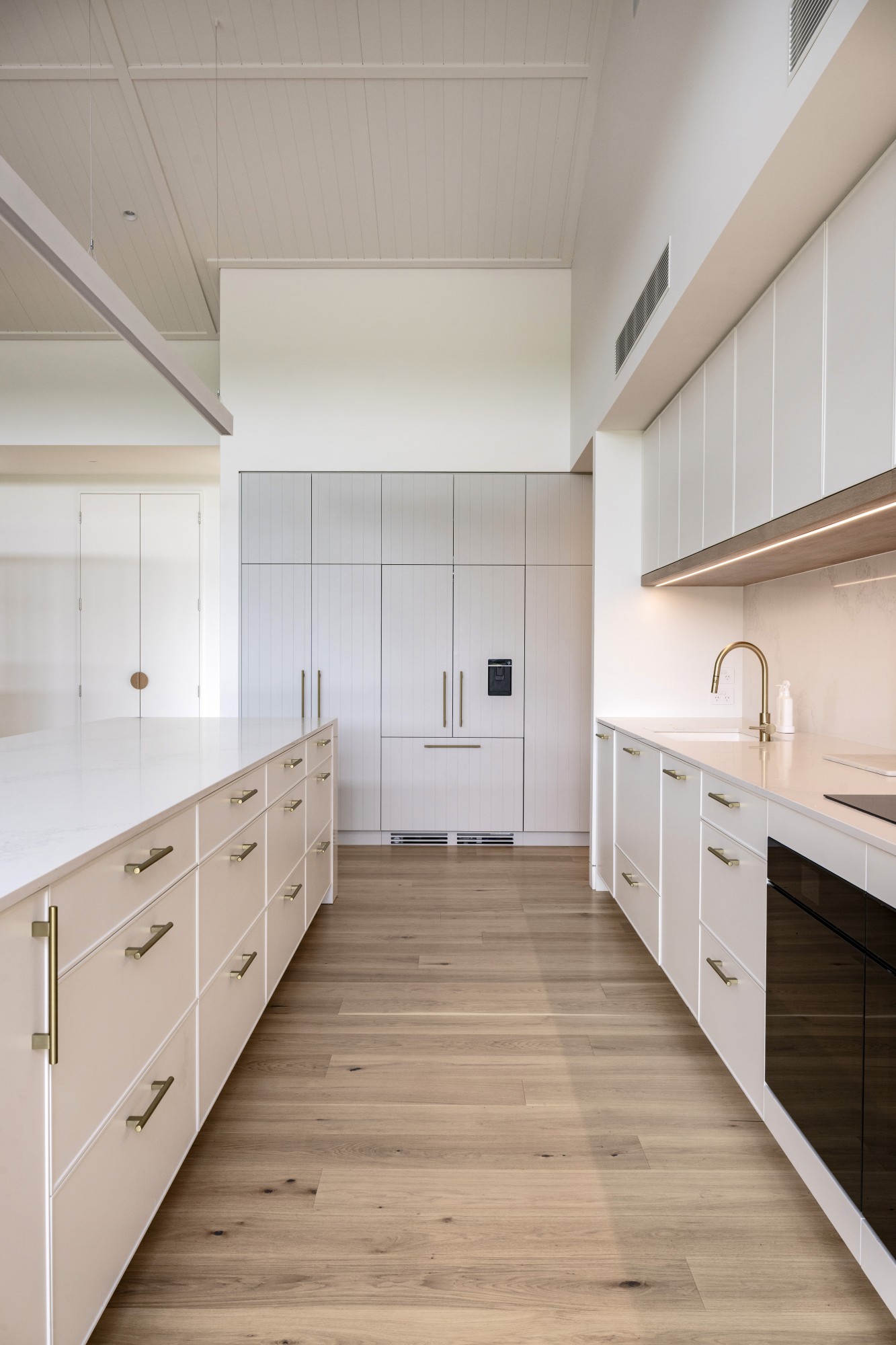 At the heart of the home lies a kitchen that serves a function and sets a tone. Designed and manufactured by Ryan’s Kitchens and Joinery, the space features custom cabinetry and thoughtfully chosen finishes. “The Rossendale Road project is a true reflection of what we do,” says Ashleigh, designer at Ryan’s. “It showcases our ability to craft bespoke cabinetry with detailed elements that not only enhance the space aesthetically but also serve a practical purpose.”