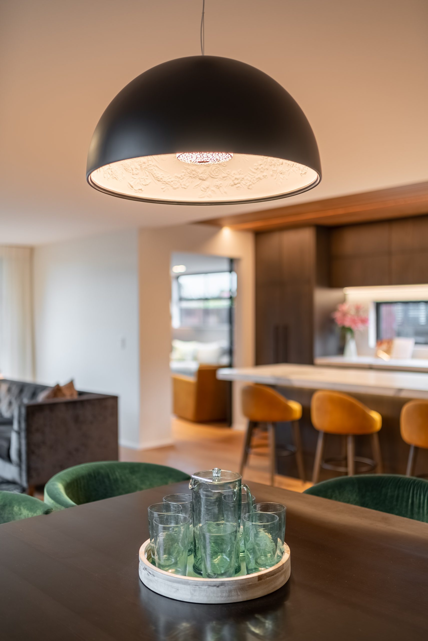 “This home was very much built by collaboration,” Richard emphasises. A standout feature of this collaborative effort is the striking copper entry door, a complex piece requiring collaboration among seven different companies, including a joiner, electrician, steel supplier, and locksmith, to ensure it met all performance standards. “It’s not just a door. There were actually seven different trades involved.”