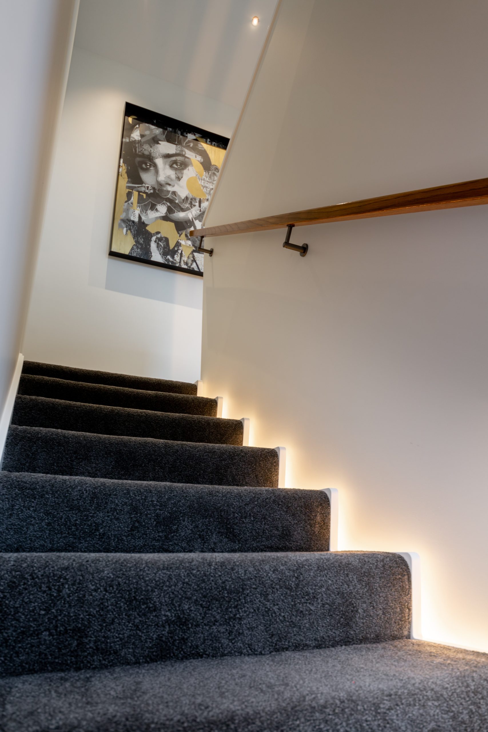 The design intricacies of the Knowles Street home are subtly woven into its structure. This technical accomplishment extends to the exceptional coordination evident in the home’s unique features, like the illuminated stairs, hidden exterior doors, and the placement of fixtures.
