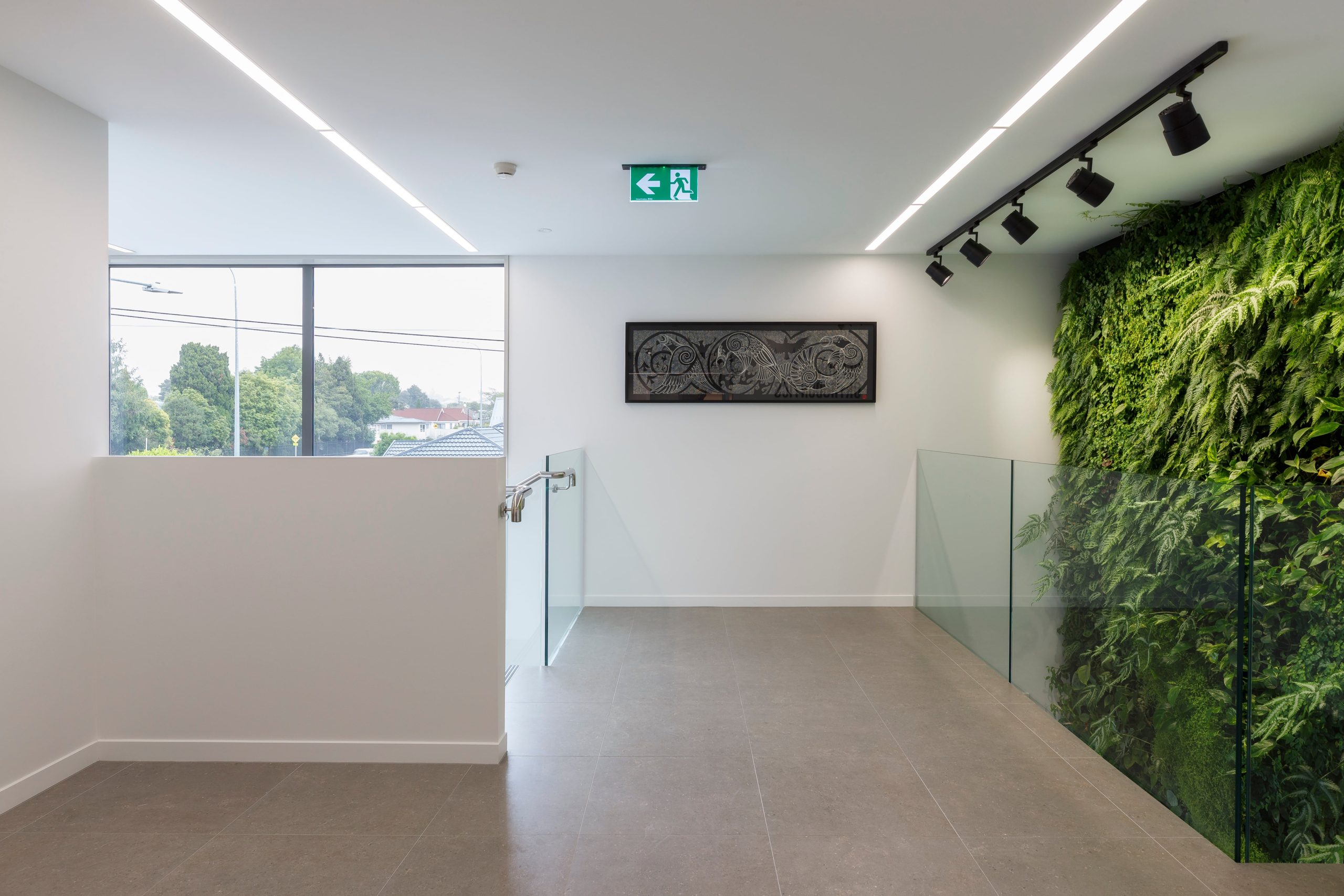 Respectful of the surrounding residential area, Redbox Architects opted for a two-level building with a unique perforated screen facing the street. This screen wasn’t just for aesthetics – it showcased a bespoke artwork by Maori artist Robin Slow, titled “Haumanu,” which translates to “restore to health, or rejuvenate.” The artwork depicts birds, symbolising the connection between physical and spiritual well-being, reflecting the clinic’s mission. The screen also provides filtered light and pocket views for those inside.