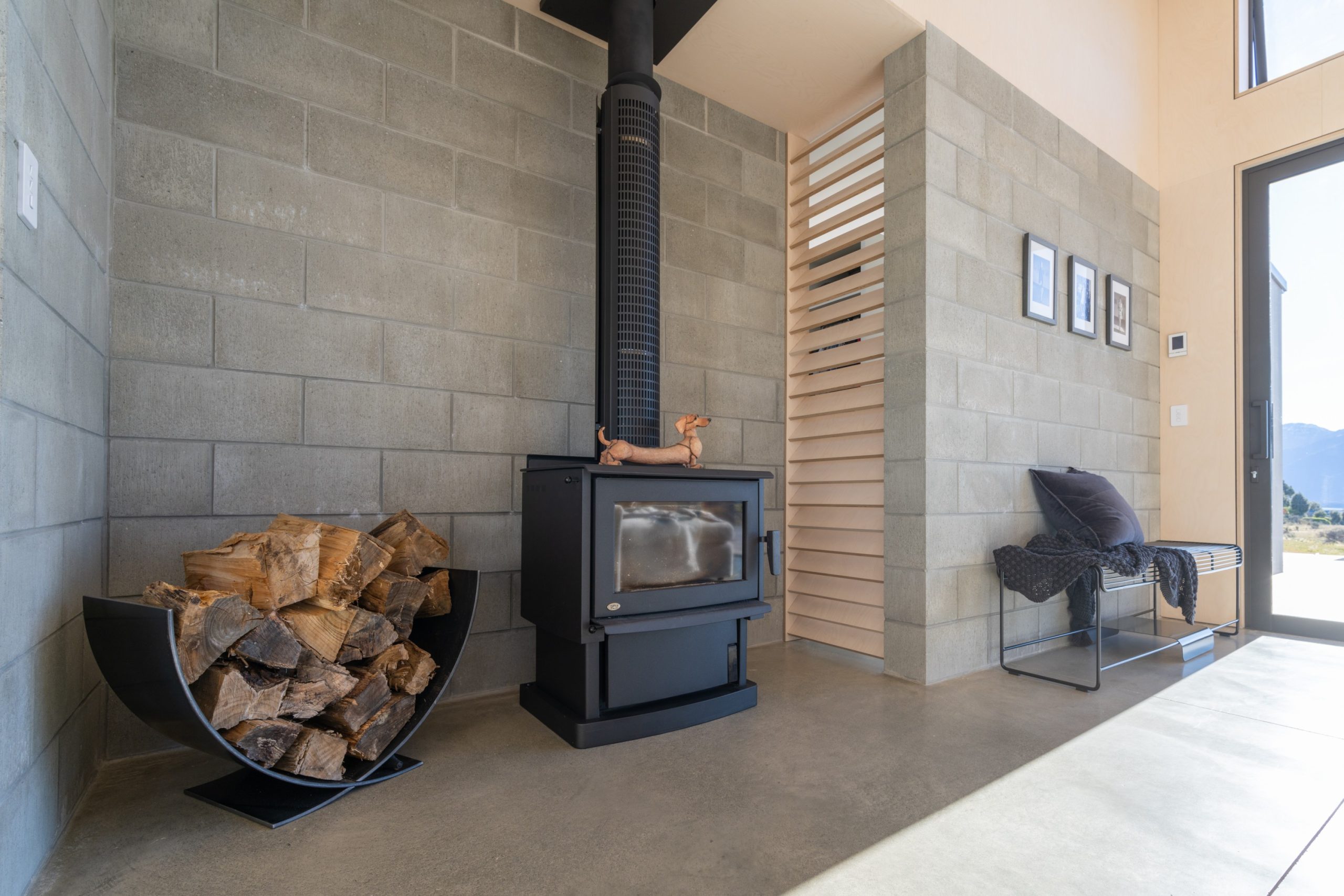 Hitting the sweet spot of warmth and openness took a combination of cutting-edge design and architectural features. Wide windows maximise panoramic views to the west and beam sunlight in without unbalancing the home’s thermal performance. The solar-powered, in-floor hydronic heating system saves over one tonne of emitted carbon each month. Combined with a fully insulated polished concrete floor, a relatively narrow cross-section, and high-operable windows, the potential overheating issue is mitigated. Above all, the home’s nucleus is a Yunca wood fire. Slats between the living space and bedroom suite transport warmth evenly.