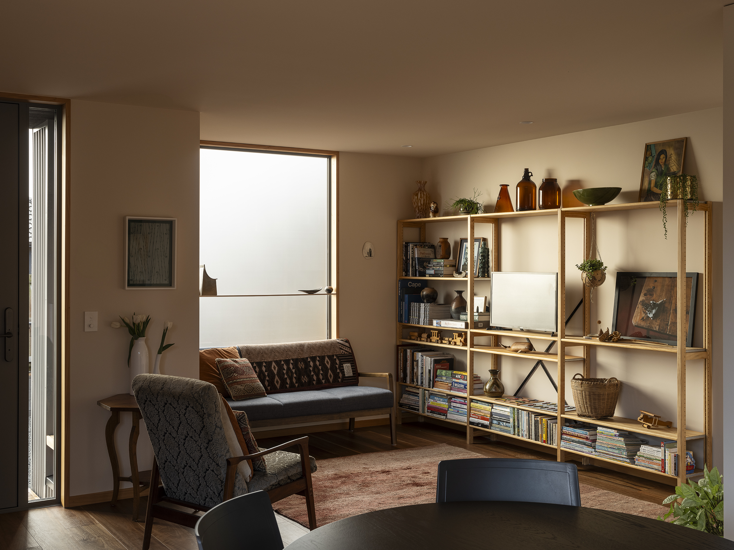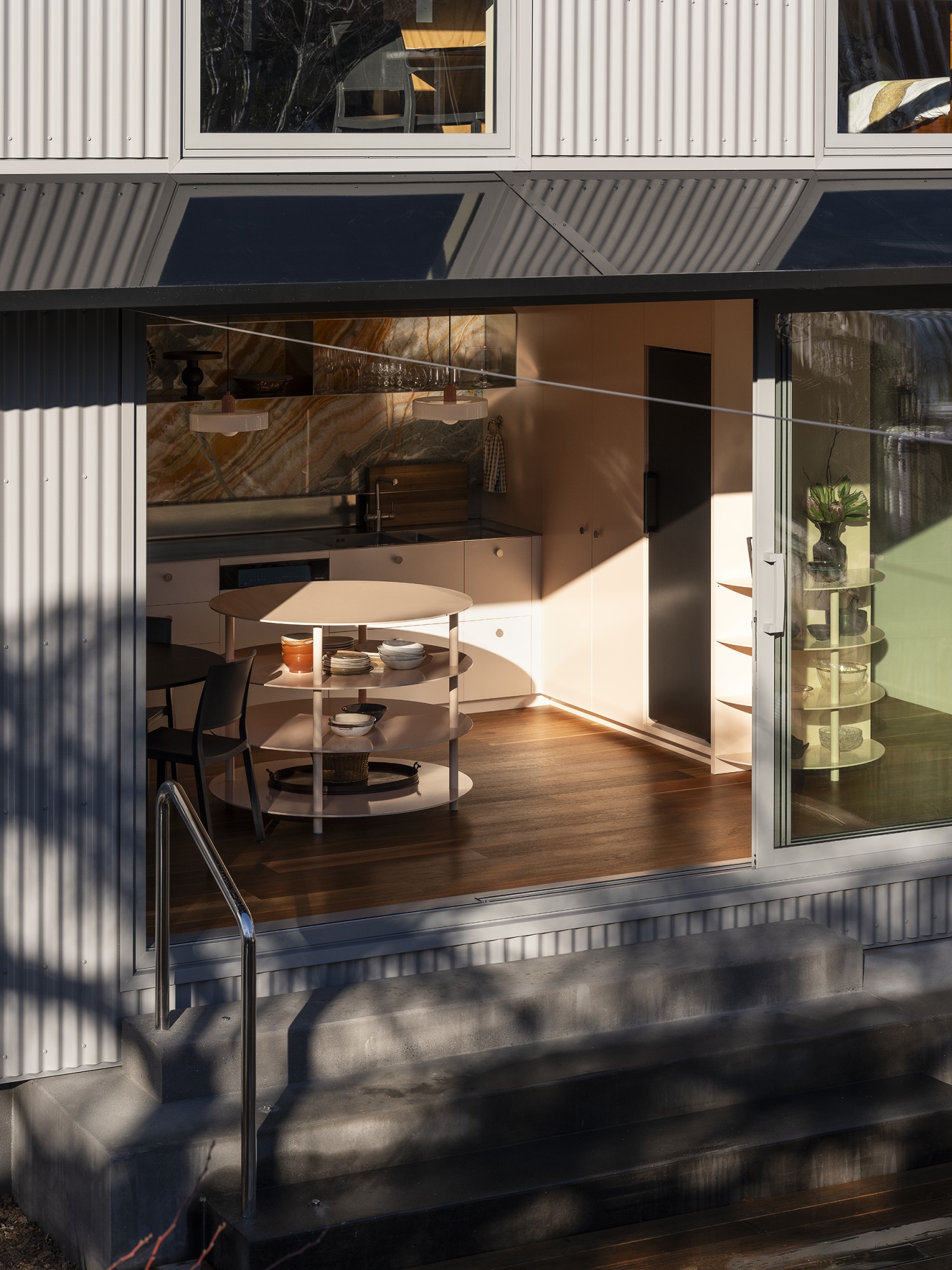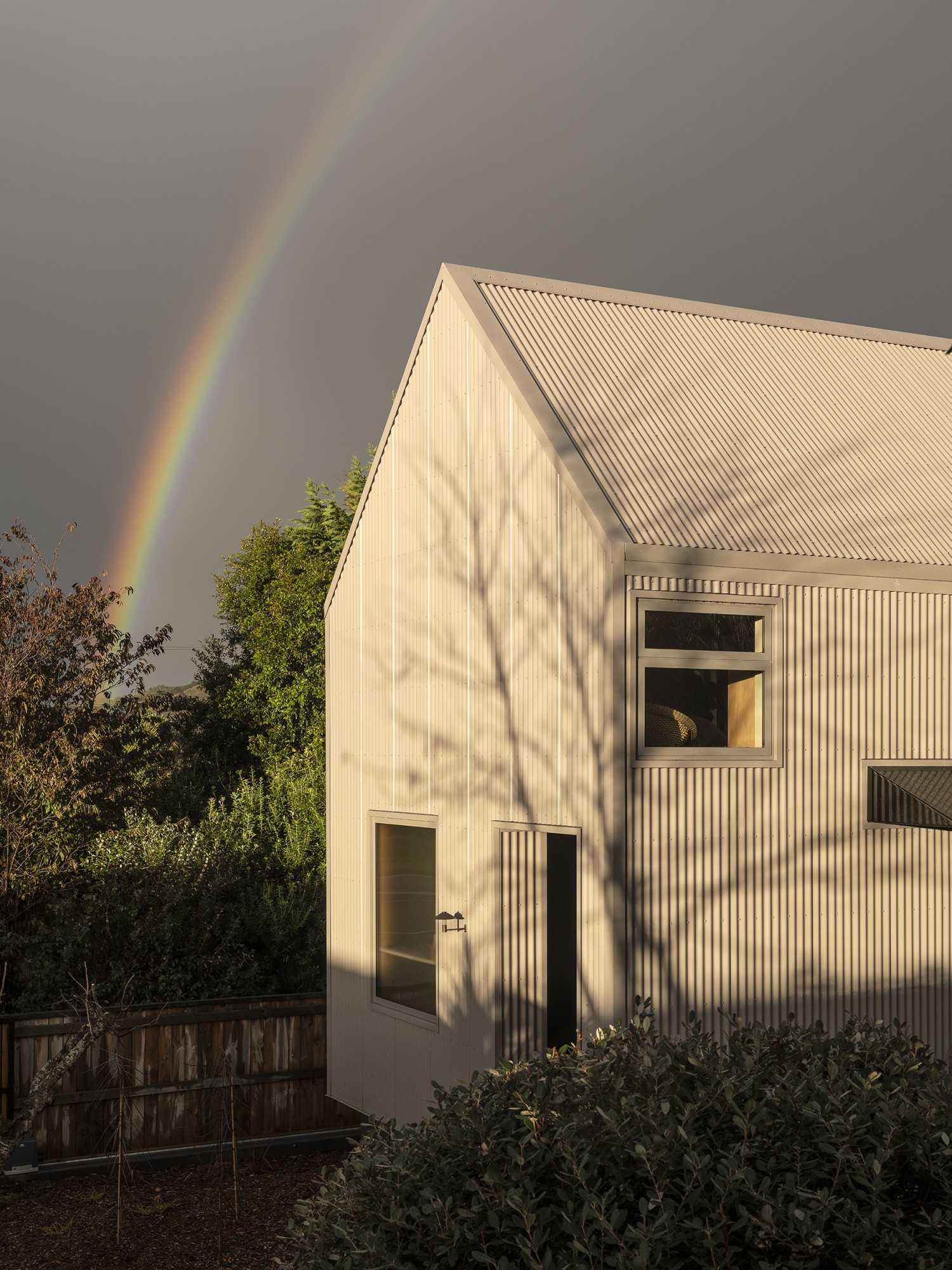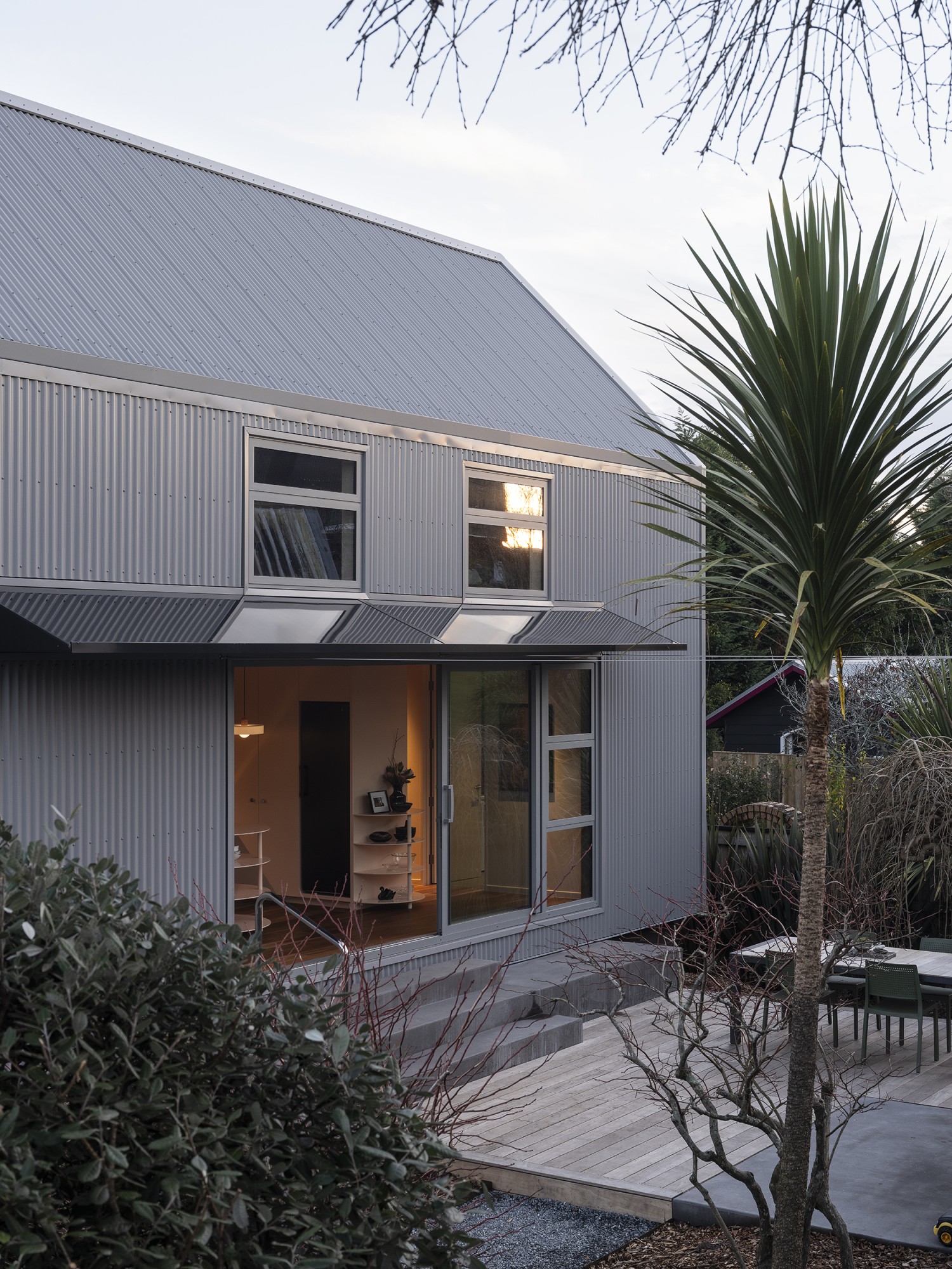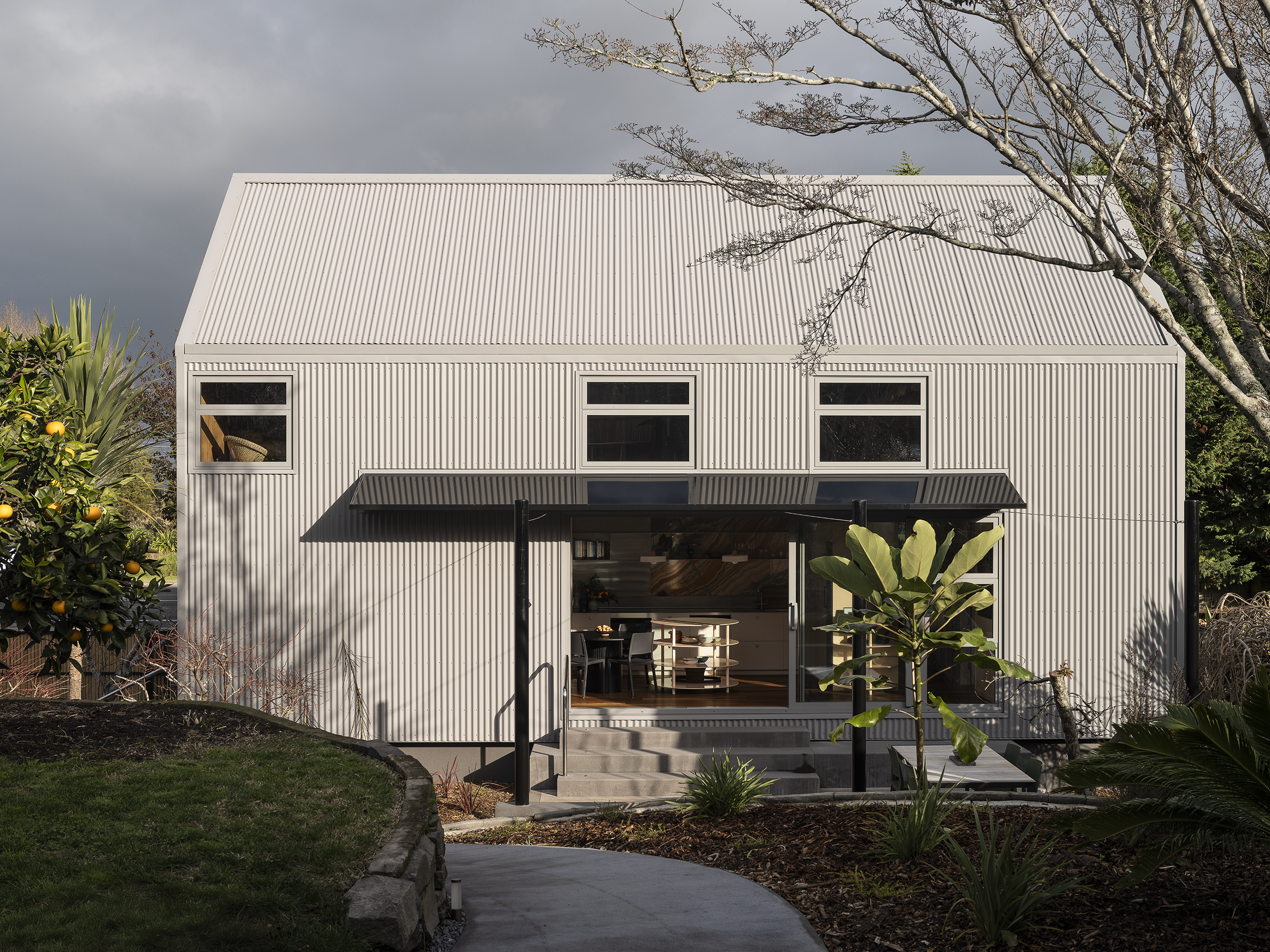 The roofing and cladding, supplied by Artisan Roofing, is a Metalcraft Corrugate in a Sandstone Grey Endura finish. Jeremy says that the recessed gutters are definitely a highlight. “We were able to tuck them in line with the exterior cladding to really accentuate the pure form of a gable house,” which Jeremy credits to Matt and his team at Totara Construction. “There was some clever craftsmanship from the builder and roofers to ensure everything lined up and the water still flowed to the outside.